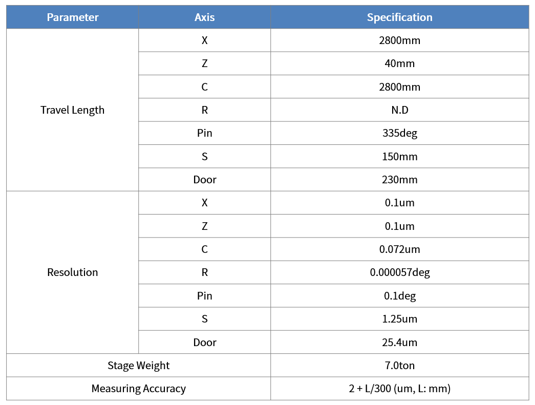 設備參數(shù) ?- 可測量螺桿長度 : 500~2800mm - ?激光尺寸誤差 : 1ppm ?- 測量精度 : 2 + L/300 (um, L : mm) ?- 根據(jù)客戶要求定制